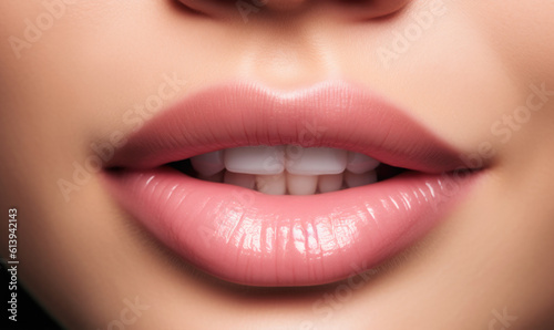 © CAPITALISMO AHORRO , Fototapeta premium fashionable lips and mouth of a young female model. AI GENERATIVE