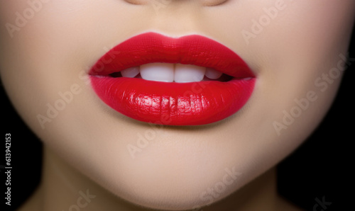 © CAPITALISMO AHORRO , Fototapeta premium fashionable lips and mouth of a young female model. AI GENERATIVE