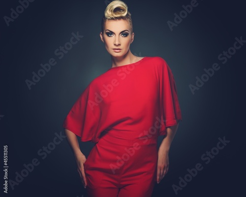 © Nejron Photo, Naklejka premium Fashionable woman in red with creative hairstyle