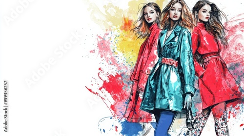 Fototapeta premium Fashionable Women in Vibrant Coats Showcasing Style and Dynamic Energy