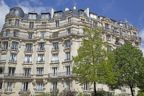 © Ralf Gosch, Naklejka premium Fassade eines traditionellesn Mehrfamilielnhauses in Paris, Fran