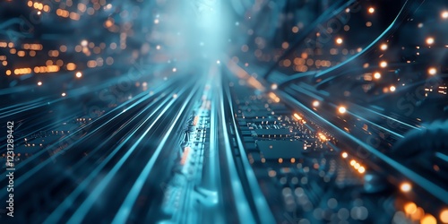Obraz premium Fast data transmission through fiber optic cables, carefully routed across...