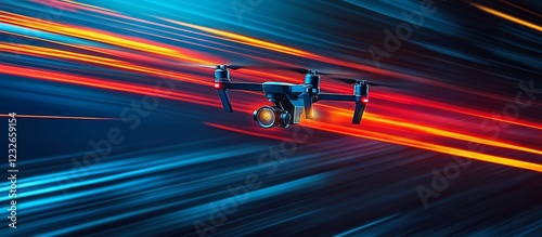 © STwul, Obraz premium Fast Drone Flight, Night City Lights, Aerial Photography