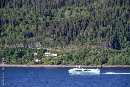 © Björn Wylezich, Obraz premium fast ferry in Norwegian fjord
