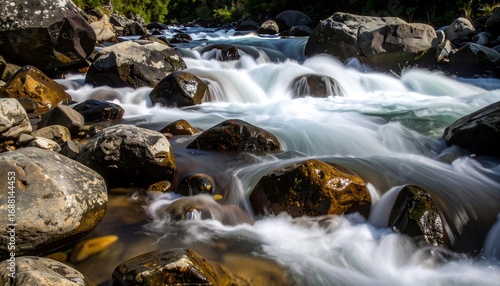 © Buabeh, Fototapeta premium Fast-flowing river cascading over rocks