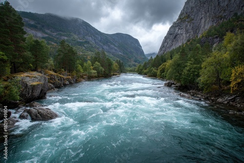 © Cendana, Fototapeta premium Fast-flowing river in a mountain valley