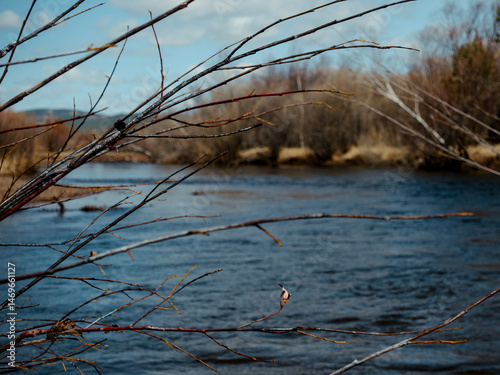 © Tungalag, Fototapeta premium Fast flowing river in spring. Siberia