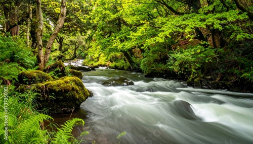 © wedang, Fototapeta premium Fast-flowing river through a lush green forest