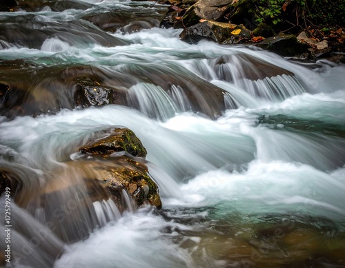 Fototapeta premium Fast-flowing stream cascading over rocks