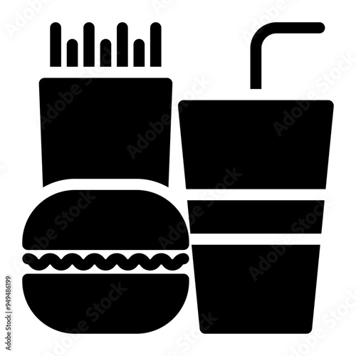 Obraz premium Fast food icon in glyph solid black fill style