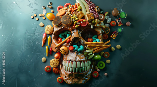 © MC-CHUAN, Naklejka premium Fast Food Skull: A Sinister Symphony of Junk Food