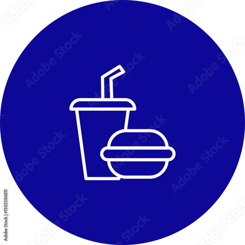 © shaneela, Fototapeta premium Fast Food Vector Line Blue Circle Icon Design
