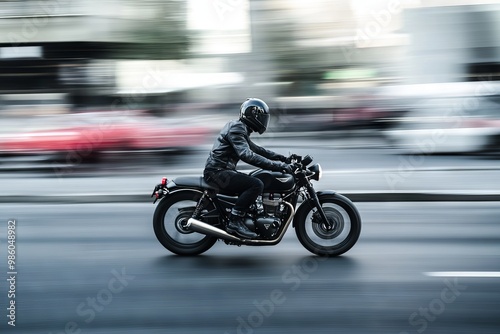 Fototapeta premium Fast Motorcycle Rider in Motion. AI generated illustration