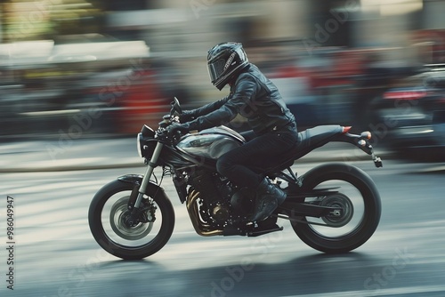 Fototapeta premium Fast Motorcycle Rider in Motion. AI generated illustration