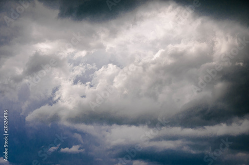 Obraz premium Fast moving dramatic storm clouds on blue sky at summertime.