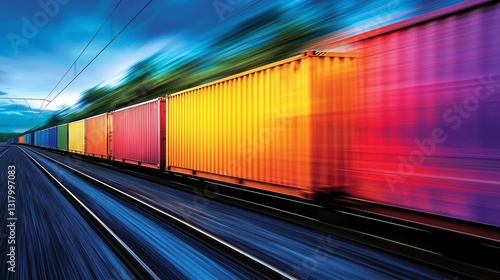 © Pitch Aya, Fototapeta premium Fast-Moving Freight Train Railway Action Shot Urban Environment Low Angle Dynamic Composition