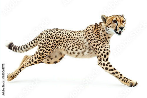 © Ritam, Fototapeta premium Fast Running Cheetah on White Background