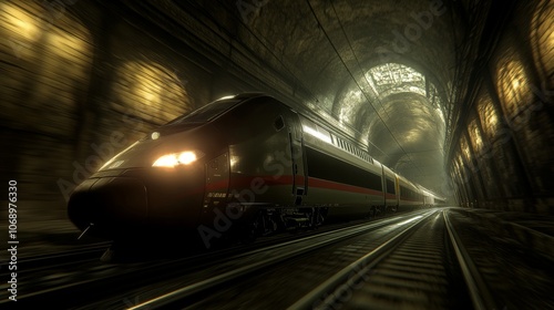 Obraz premium Fast Train in Dark Tunnel with Dramatic Lighting