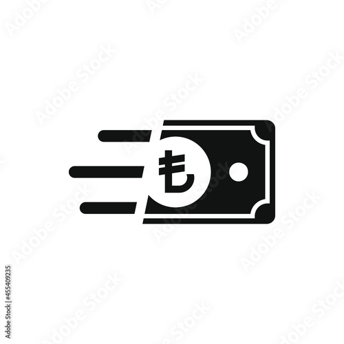 Fototapeta premium Fast Turkish lira cash. Quick money transfer icon flat style isolated on white background. Vector illustration
