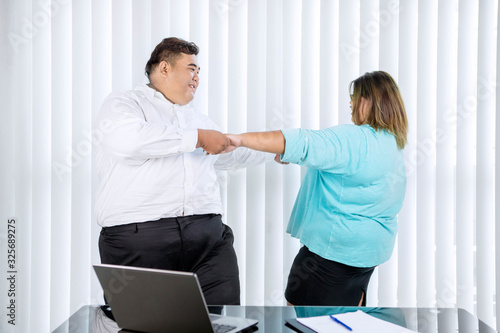 © Creativa Images, Obraz premium Fat couple dancing and holding hands together