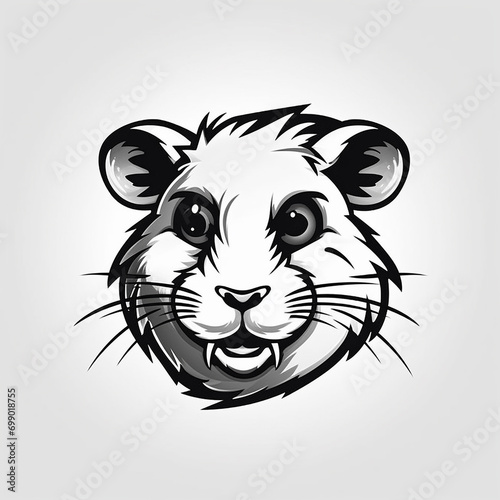 Obraz premium Fat cute hamster, logo, monochrome drawing, hamster Icon, lemming symbol, pet portrait, mouse pictogram, for laser engraving