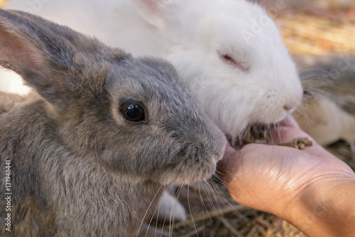 © janjutamas, Fototapeta premium Fat fluffy bunny eating food..