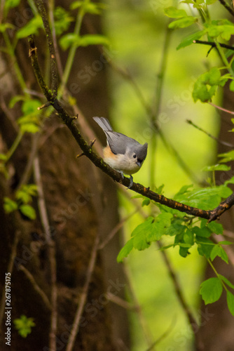 © Melissa Burovac, Obraz premium Fat gray and white bird on a tree branch