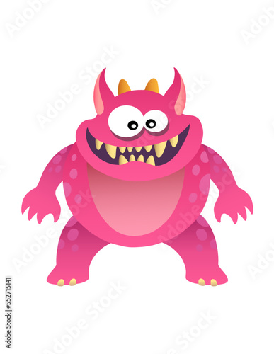 Fototapeta premium Fat pink funny monster cartoon