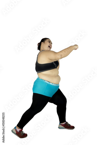 © Creativa Images, Fototapeta premium Fat woman with punching style