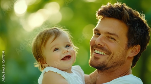 © starush, Fototapeta premium Father and child enjoying a sunny day in a lush green park, AI