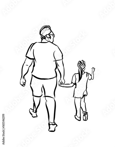 © 10incheslab, Fototapeta premium father and daughter cartoon sketch