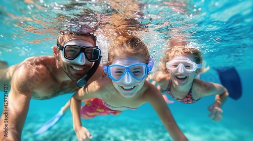 © Ilya, Fototapeta premium Father and daughter snorkeling in the sea