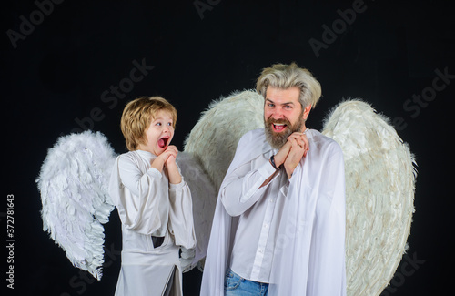 Obraz premium Father and son Angels. Valentines angels. Happy father with little son in...