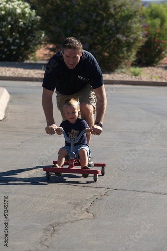 © Scott, Fototapeta premium Father and son enjoy tricycle ride.