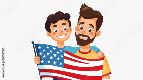 Obraz premium father and son holding an American flag on a white background, illustration,...