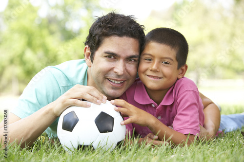 Fototapeta premium Father And Son In Park With Football