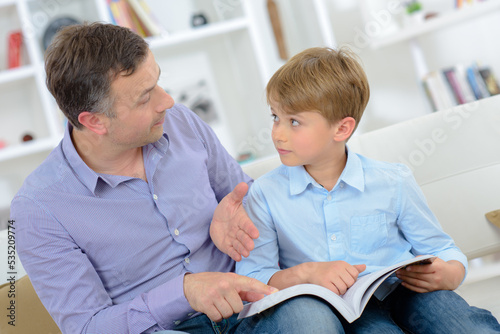 Obraz premium Father and son reading a book
