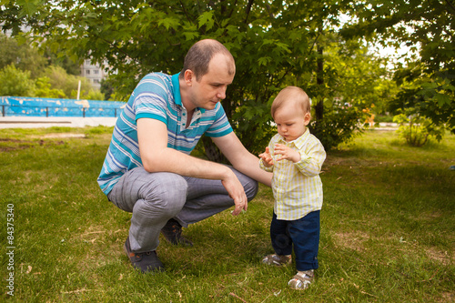 © toomler, Fototapeta premium father and son walking in the park