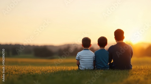 © NEXT-Ai, Fototapeta premium Father and sons enjoy a serene sunset together in nature's embrace