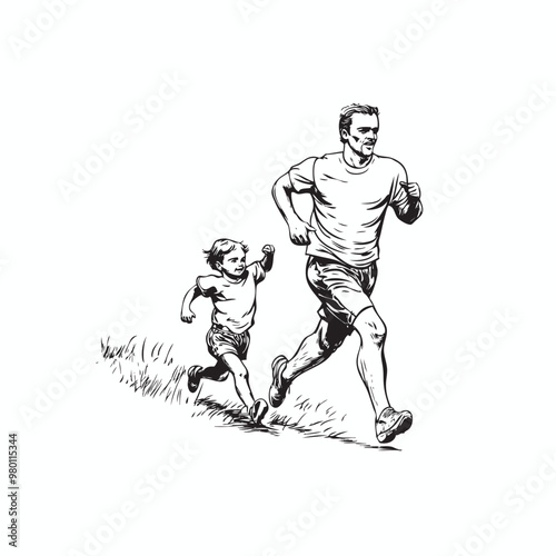 © HardWork, Fototapeta premium father running with their child vector logo