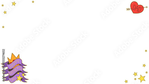 © vectorfusionart, Fototapeta premium Father's Day flat illustration is floating on transparent backdrop with purple ribbon, yellow stars