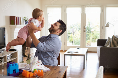 © Monkey Business, Obraz premium Father Sits At Table And Plays With Baby Son At Home