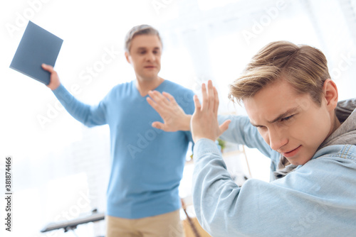 © freeograph, Obraz premium Father swings to hit his son with book.