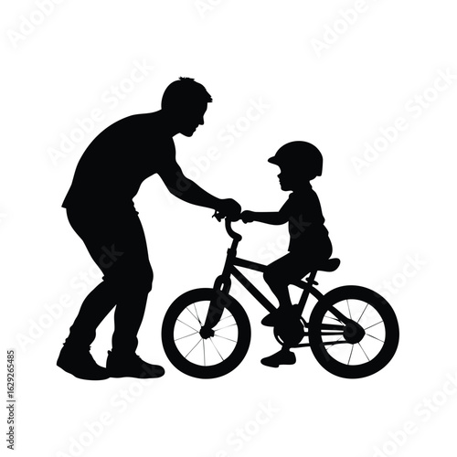 Fototapeta premium Father teaching his son how to ride a bicycle, silhouette art