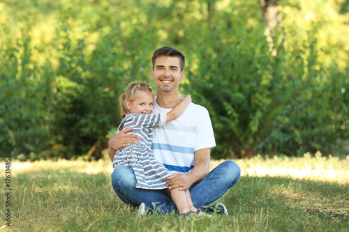 Fototapeta premium Father with daughter in park on sunny day
