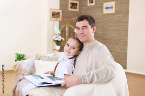 © Sergey Nivens, Fototapeta premium father with his daughters at home