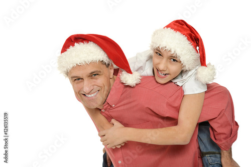 Fototapeta premium father with son wearing Christmas caps