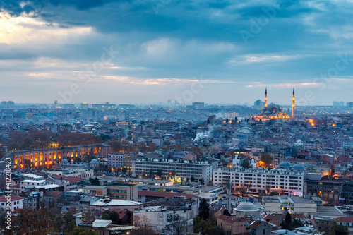 Fototapeta premium Fatih Mosque night view from Suleymaniye Mosque in Istanbul