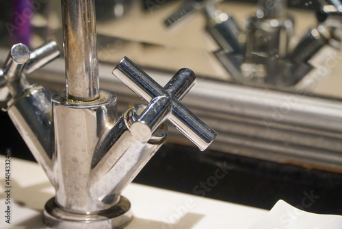 Fototapeta premium Faucet in a modern bathroom, close-up. Selective focus.