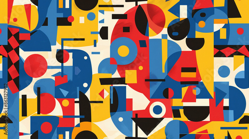© Swaroop, Fototapeta premium Fauvism and Bauhaus Seamless Pattern Cubism abstract wallpaper. Minimalism Bauhaus Seamless Pattern Cubism abstract wallpaper